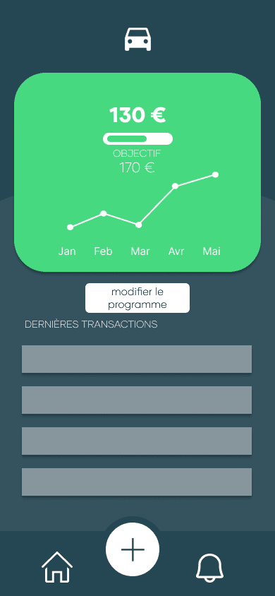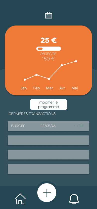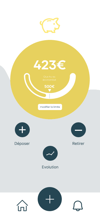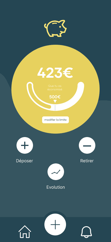 Pour ce projet, j'ai conçu l'ensemble des assets moi même et me suis imposé de ne pas reprendre des concepts déjà utilisés par d'autre personnes. Le principe de cette application est de faciliter l'épargne et la gestion du budget chez les jeunes. Pour rendre cette application attrayante j'ai cherché à la rendre non seulement fonctionnelle mais également esthétique, ludique, facile d'utilisation et surtout très intuitive.