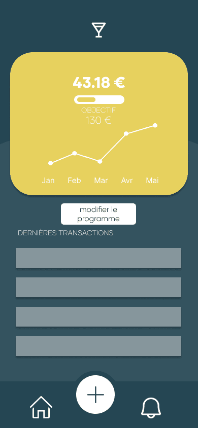 Smyle est une application destinée aux jeunes : j'ai donc opté pour une version avec un bilan financier journalier. Pour faciliter la lisibilité de l'application j'ai également accordé un soin particulier à son ergonomie en rendant les montants très visibles. On peut ainsi en un coup d'œil constater son bilan financier.